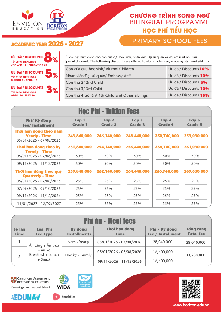 HỌC PHÍ TIỂU HỌC